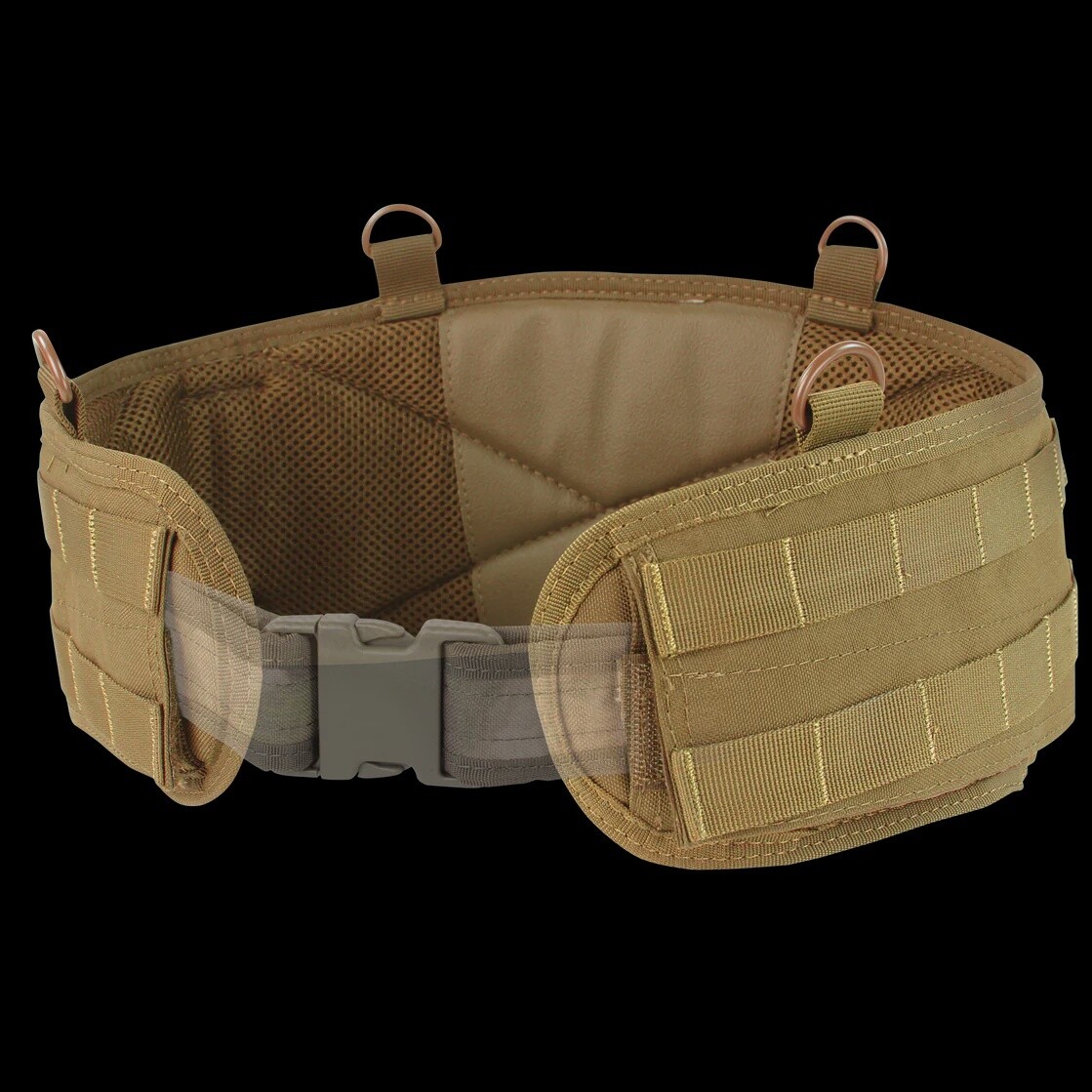 Stay organized on duty, during training or during outdoor excursions with the Gen II Battle Belt. This Condor battle belt was designed to provide extra real estate for modular attachments and accessories. It can be used in conjunction with our Condor H-Harness (product code 215) by clipping into the four D-rings. This MOLLE belt is excellent for achieving a light and easy loadout and provides additional options for arranging your modular attachments, including magazine pouches, multi-tools, knives, and more. The belt also helps to distribute extra weight from your load-bearing vest so you can move more comfortably and maintain your endurance. This Condor battle belt must be used with a 1.5-inch to two-inch web belt (not included).